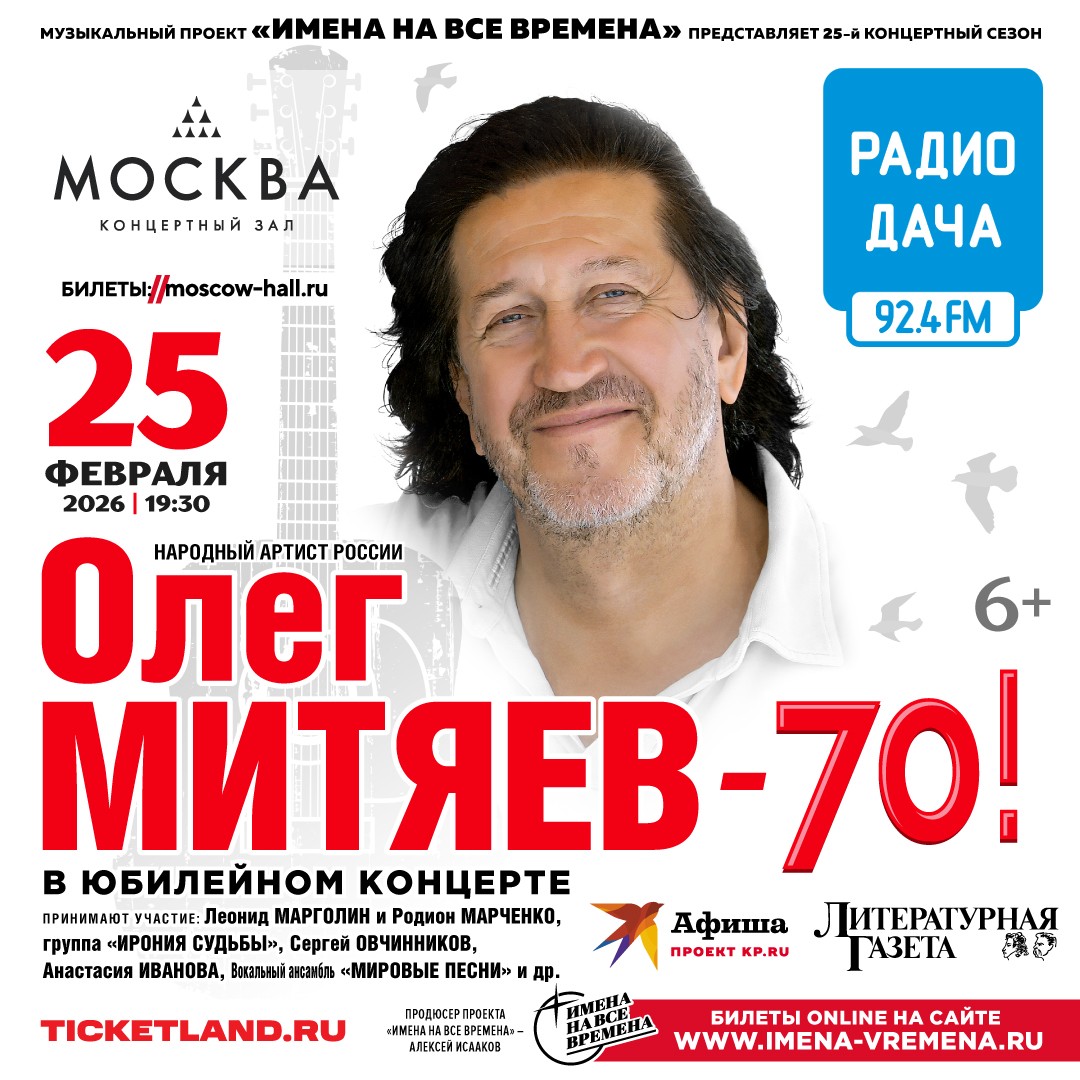 Музыкальный проект "Имена на все времена" представляет - Большой Юбилейный концерт "Олег Митяев - 70!" г. Москва, Концертный зал «Москва»